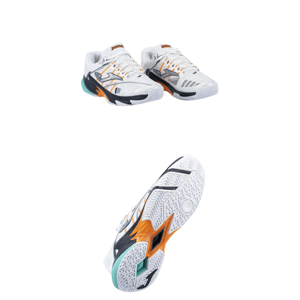 Zapatilla Joma T.Open 2302 esta zapatilla es ideal para aquellos tenistas profesionales de peso medio-alto que quieren mejorar su experiencia en pista. Cuentan con horma ancha más cómoda.Fabricadas en textil flexible y transpirable, acompañado de pequeñas perforaciones VTS que facilitan la entrada y salida de aire para conseguir una correcta ventilación del sudor. Estas piezas de textil están protegidas y reforzadas por material sintético dispuesto de manera estratégica sin costuras. Al no haber costuras, no hay más peso y se mejora el ajuste. Gracias a la combinación de los sistemas PERFECT FIT, que permite un ajuste personalizado, y el ADJUSTFIT SYSTEM, que proporciona un ajuste excepcional gracias a la forma de su cordonera, se consigue una adaptación perfecta al pie. La Zapatilla Joma T.Open 2302 Incorpora una pieza de protección en la puntera par reforzar su resistencia a la abrasión. La mediasuela ha sido realizada mediante el doble phylon de la tecnología FULL DUAL PULSOR. El phylon que va de la puntera hacia el talón es de mayor densidad para proporcionar estabilidad a la pisada, al mismo tiempo que se eleva en una de sus partes dando lugar a la tecnología PROTECTION. Y es más, está seccionado con el sistema de líneas de flexión FLEXO para adaptarse a la pisada. El phylon de la zona del talón es de menor densidad, proporcionando mayor amortiguación y, por tanto, generando una mejor absorción de impactos. Incluye una pieza del sistema STABILIS SYSTEM que estabiliza la pisada y previene los giros inadecuados y las lesiones. La suela es de caucho DURABILITY con excelente resistencia al desgaste por abrasión.